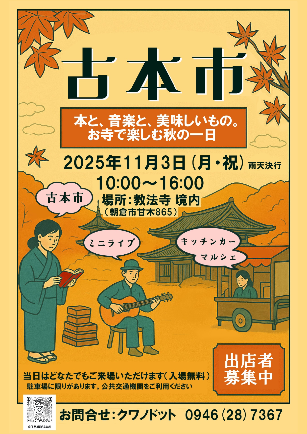 (雨天の場合、「のきさき古本市」は11月3日(月・祝)に順延です)