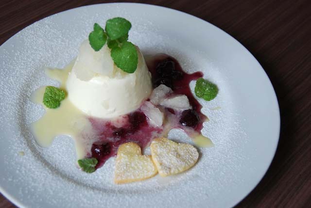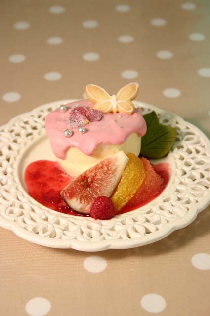 「王女のためのバヴァロワ(ホワイトチョコレート)―バラとフランボワーズのソース添え(ドリンク付)」/900円