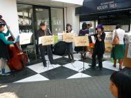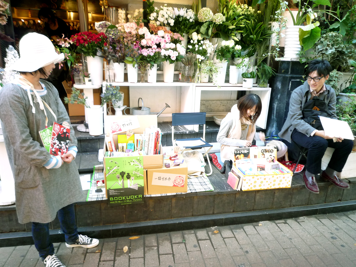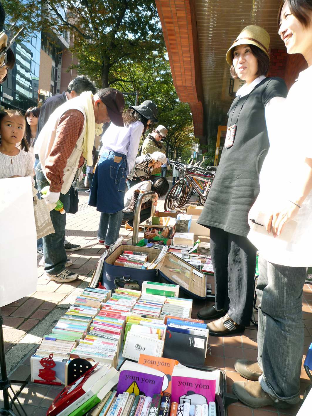 ことしで4回目を迎えたブックオカのメインイベント「一箱古本市 in けやき通り」。最高気温28度という好天に恵まれ、無事開催にこぎつけました。人出もスタートから終了までほぼとぎれることなく、出店者のみなさんとお客さんとの会話がはずむ光景が、あちらこちらで見受けられました。またことしは〈こども店長〉や〈イヌ店長〉、そして〈楽団店長〉も出現し、和やかな雰囲気を盛りあげてくれました。