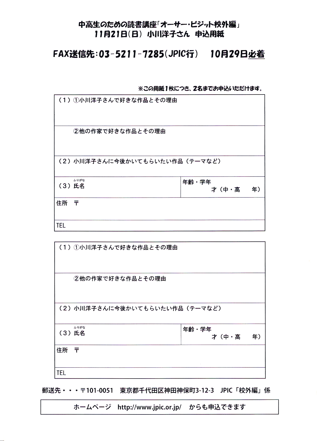 【予約先】http://www.jpic.or.jp/(JPIC)