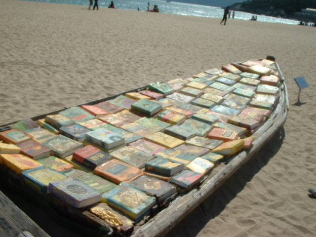 そして海雲台のビーチにて、船に積まれた本を発見!