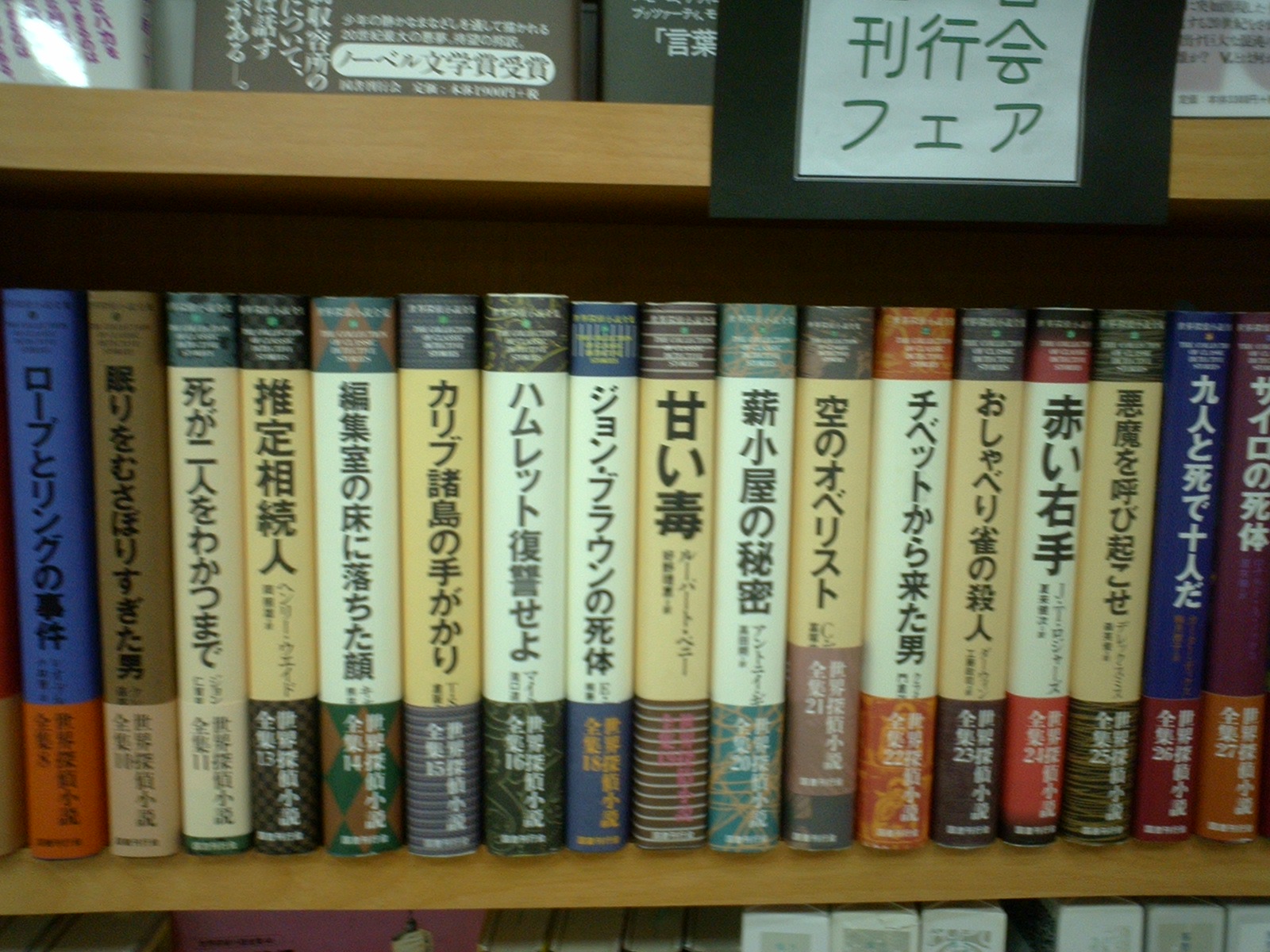 福家書店キャナルシティ博多店では、普段在庫を持っていない国書刊行会という出版社のフェアを行なっております。国書刊行会が出版し在庫しているものをほぼ網羅いたしました。その数約300点、英米だけでない世界中の文学作品や、世界探偵小説全集、幻想文学、トマス・ド・クインシー著作集、ボルヘスの作品、国内では吉屋信子、野坂昭如全集等、通常他の書店でもなかなかお目にかかれない珍しい書籍が目白押しです。ぜひこの機会にご来店下さいませ。