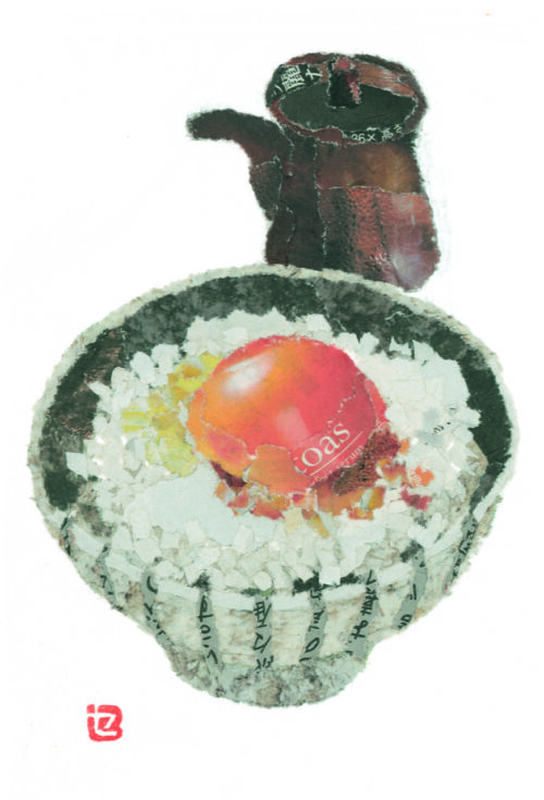 90歳から始めた新聞や広告チラシを使ったちぎり絵が SNS で評判を呼び書籍化(『90歳セツの新聞ちぎり絵』『91歳セツの新聞ちぎり絵ポストカードブック』里山社)。大ブームを巻き起こしたセツさんの最新作を展示。 -
